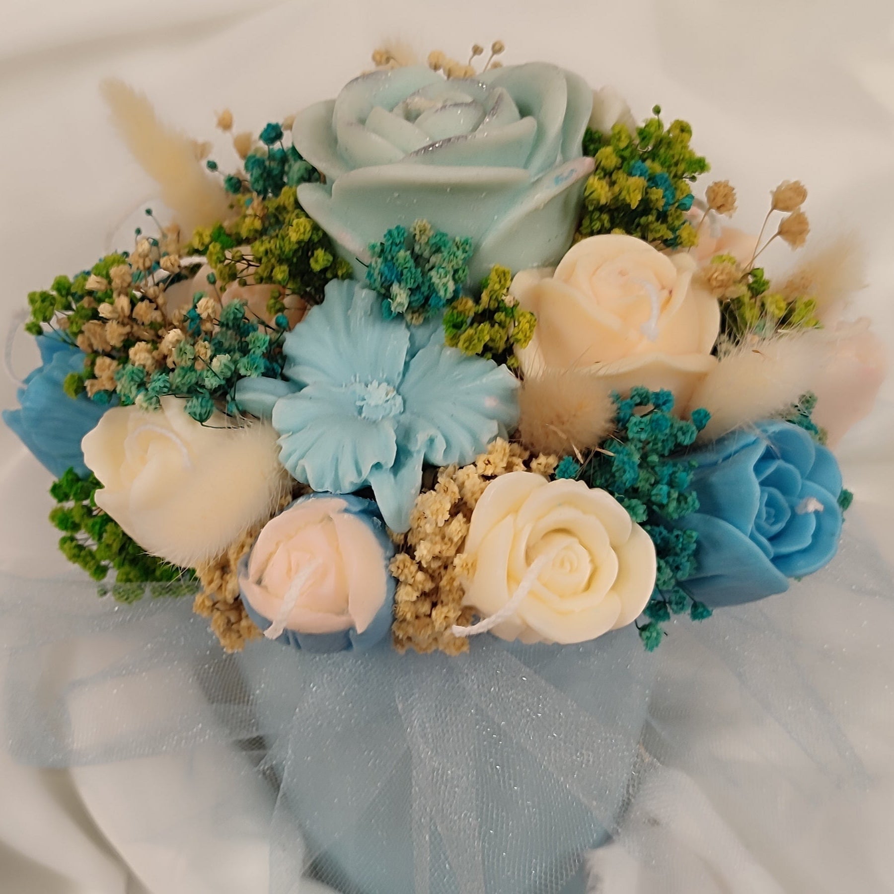 Un buchet care aduce toamna mai aproape de tine, cu flori delicate în nuanțe calde de portocaliu și alb, învăluite în accente aurii și ruginii. Textura bogata a plantelor uscate și detaliile fine creeaza o armonie care amintește de razele blande ale soarelui de septembrie si foșnetul frunzelor căzute.