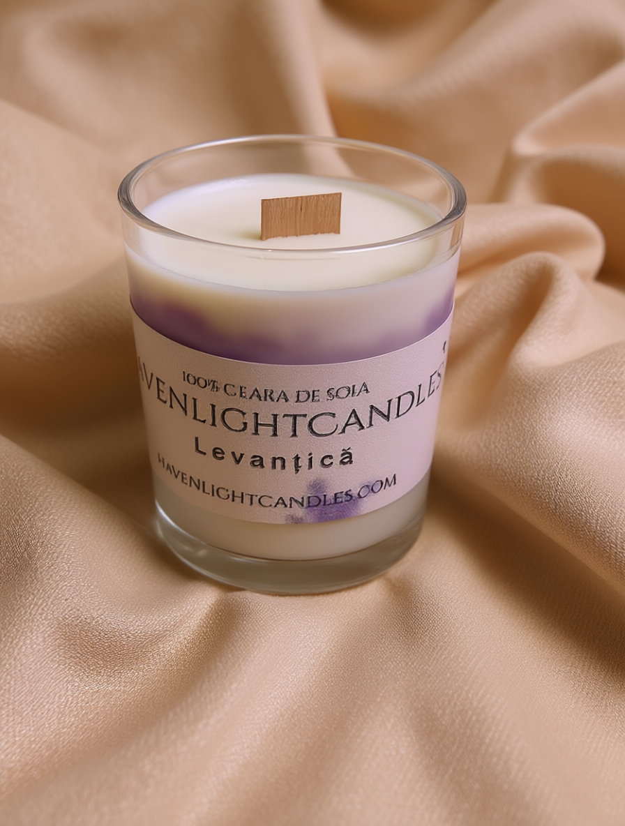 Transformă orice moment într-un răsfăț relaxant cu lumânarea noastră parfumată cu aroma delicată de lavandă. Realizată manual din ceară naturală de soia și uleiuri parfumate de calitate, oferă un parfum calmant și reconfortant care umple treptat încăperea.